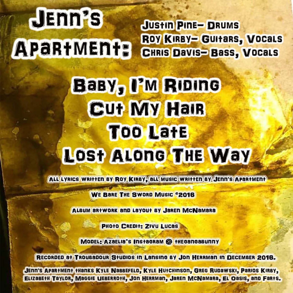 Jaren McNamara has been the principle graphic designer for Jenn’s Apartment for ten years. The majority of their artwork including cover art and show flyers have been designed by Jaren.